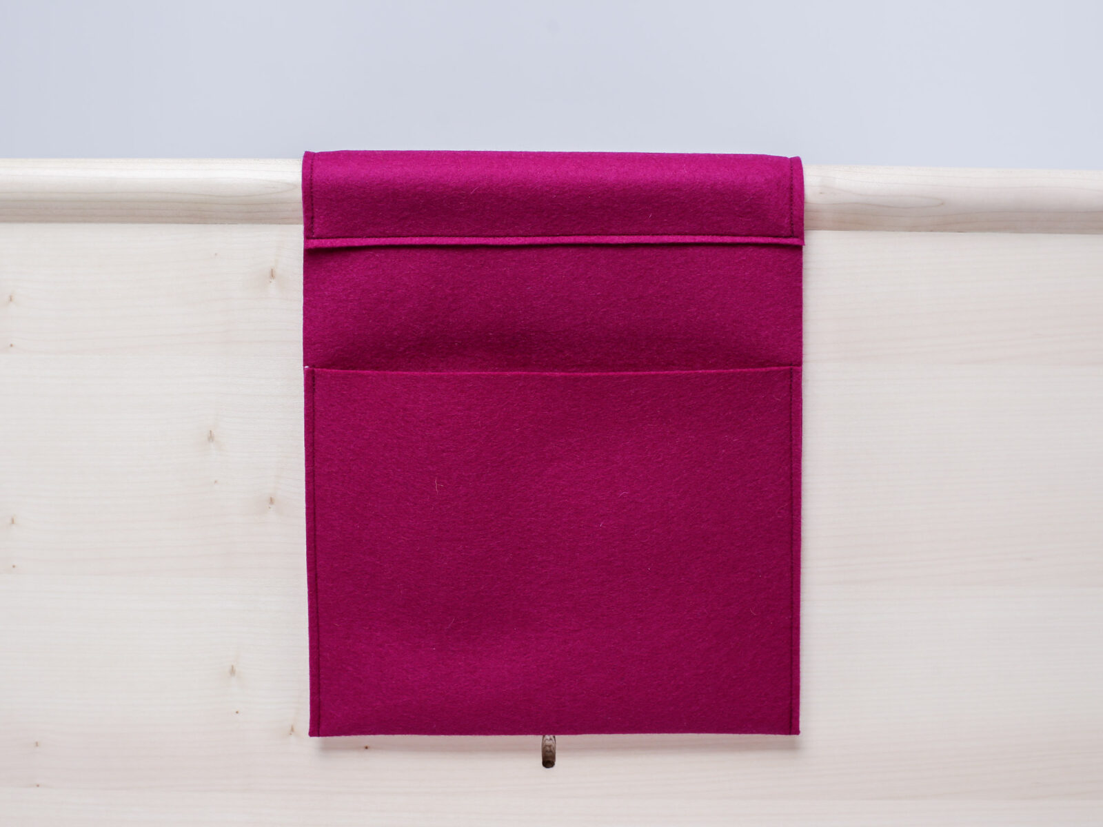 baggs bestehen aus reinem Wollfilz. Die integrierte Aufsteckleiste sorgt für sicheren Halt an der Lehne. Es gibt sie in 3 verschiedenen Formaten und 5 verschiedenen Farben (mango, petrol, grau, grün und pink).