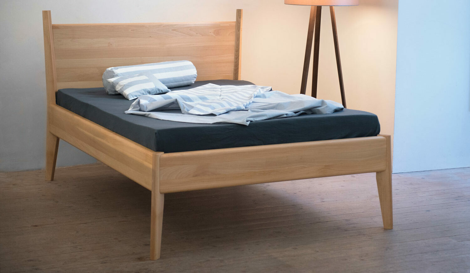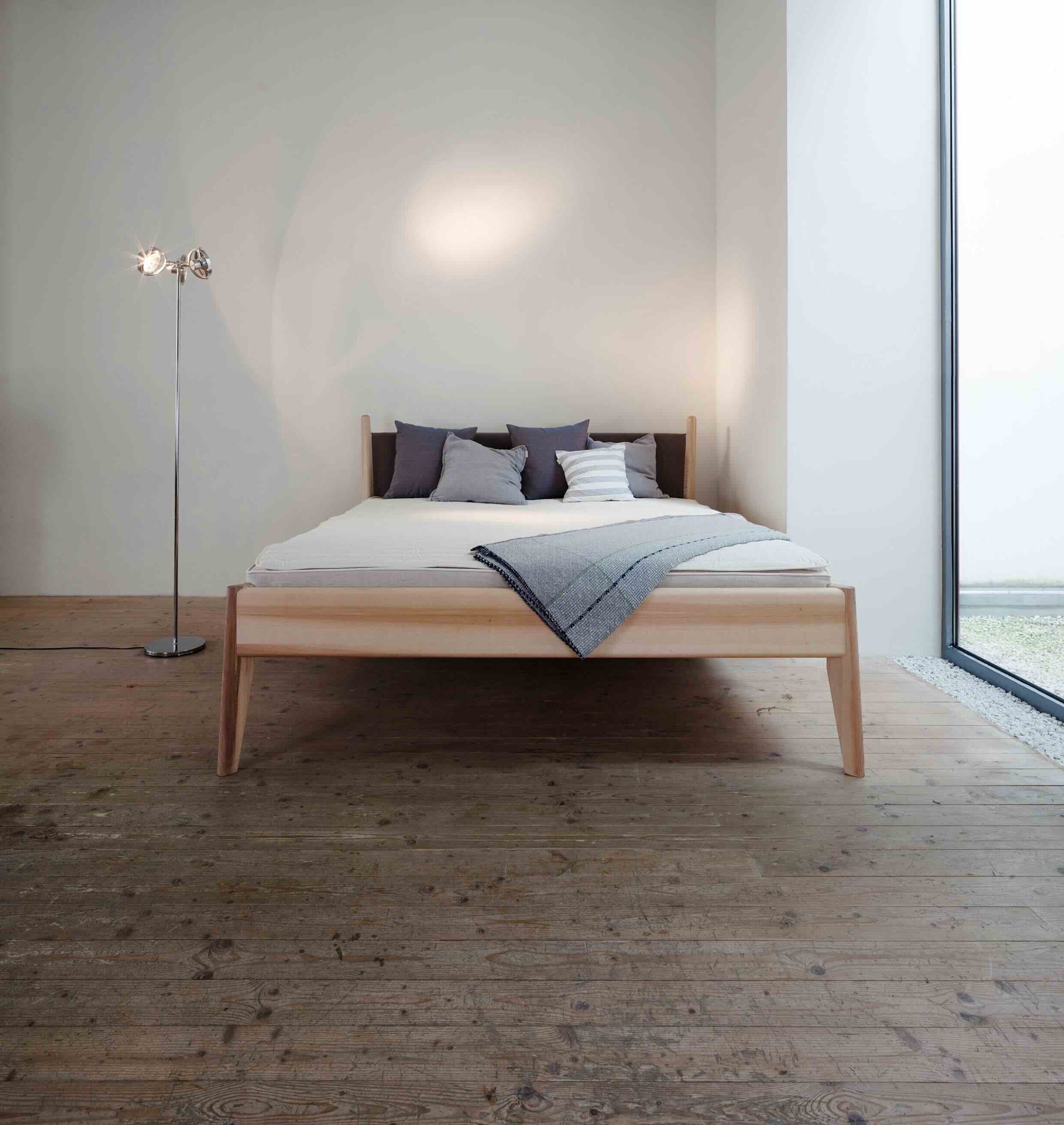 Unsere Betten fertigen wir einzeln und konsequent aus vollem Holz, frei von Schrauben, einfach und stabil gesteckt. Dafür verwenden wir heimische Harthölzer wie Braunesche, Eiche, Ulme, Kirsche und Nuss, sowie hochwertiges Hartöl für eine angenehme feine Oberfläche.