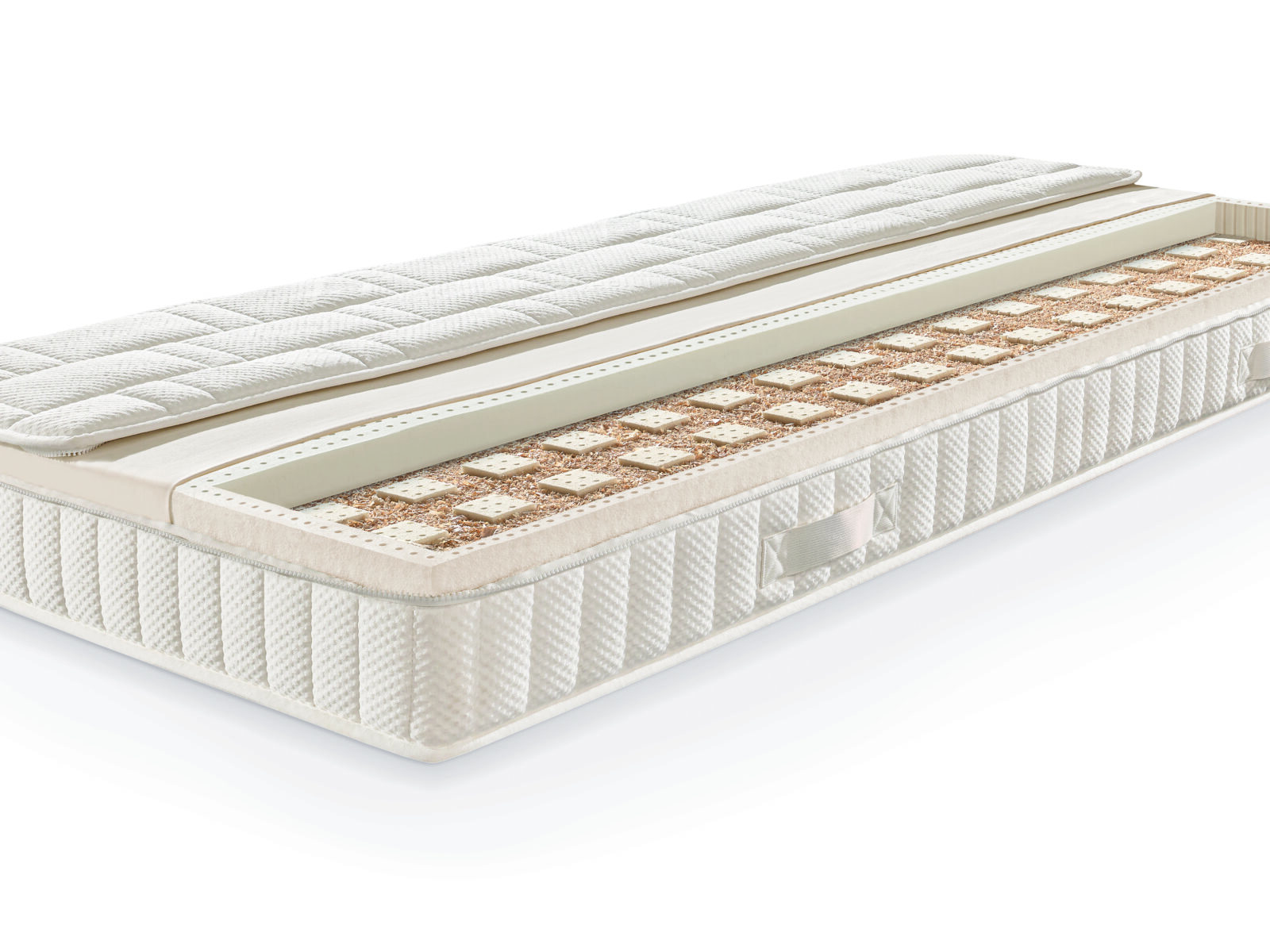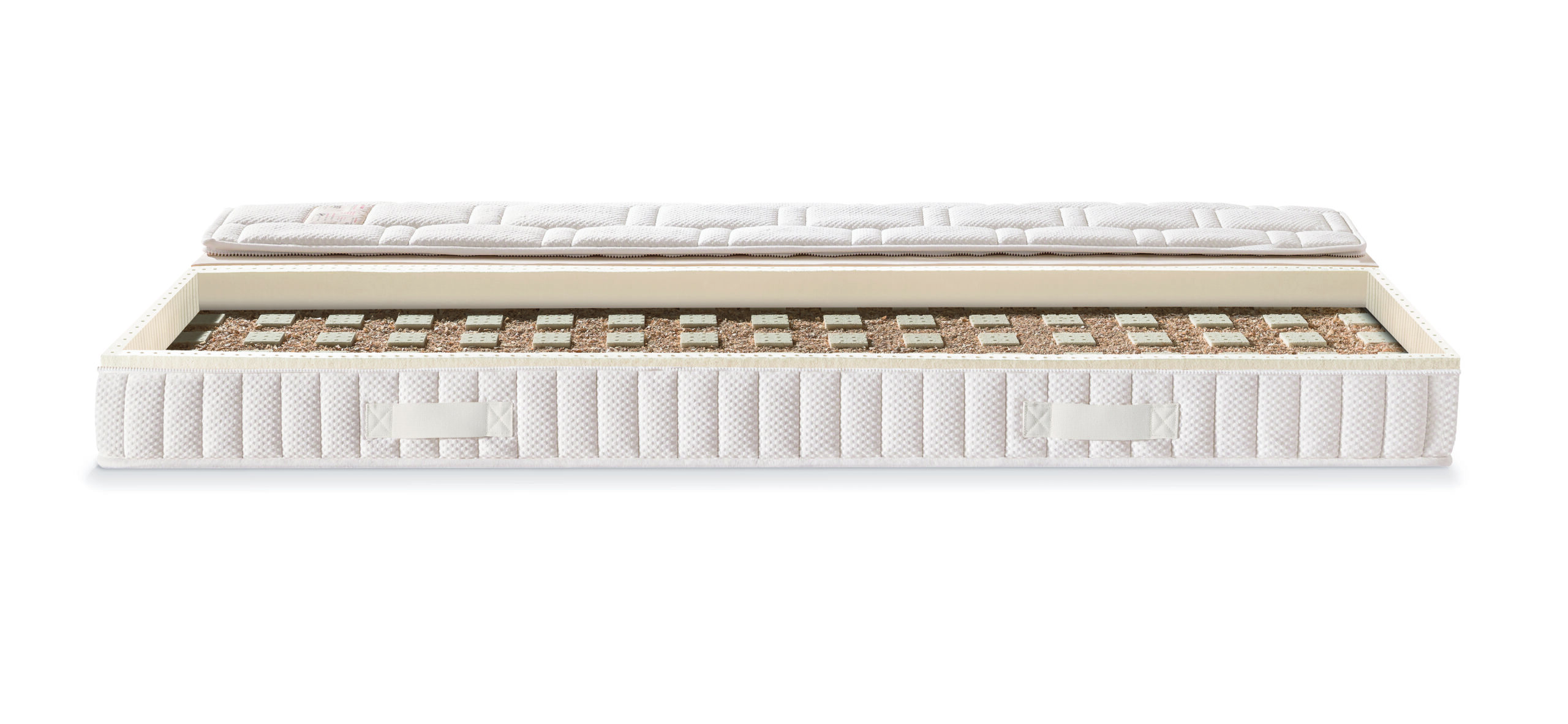 Kern:je eine Seite mit ca. 7,5cm Naturlatex soft und ca. 7,5cm 100% Naturlatex fest, Füllung der Kammern mit Zirbe