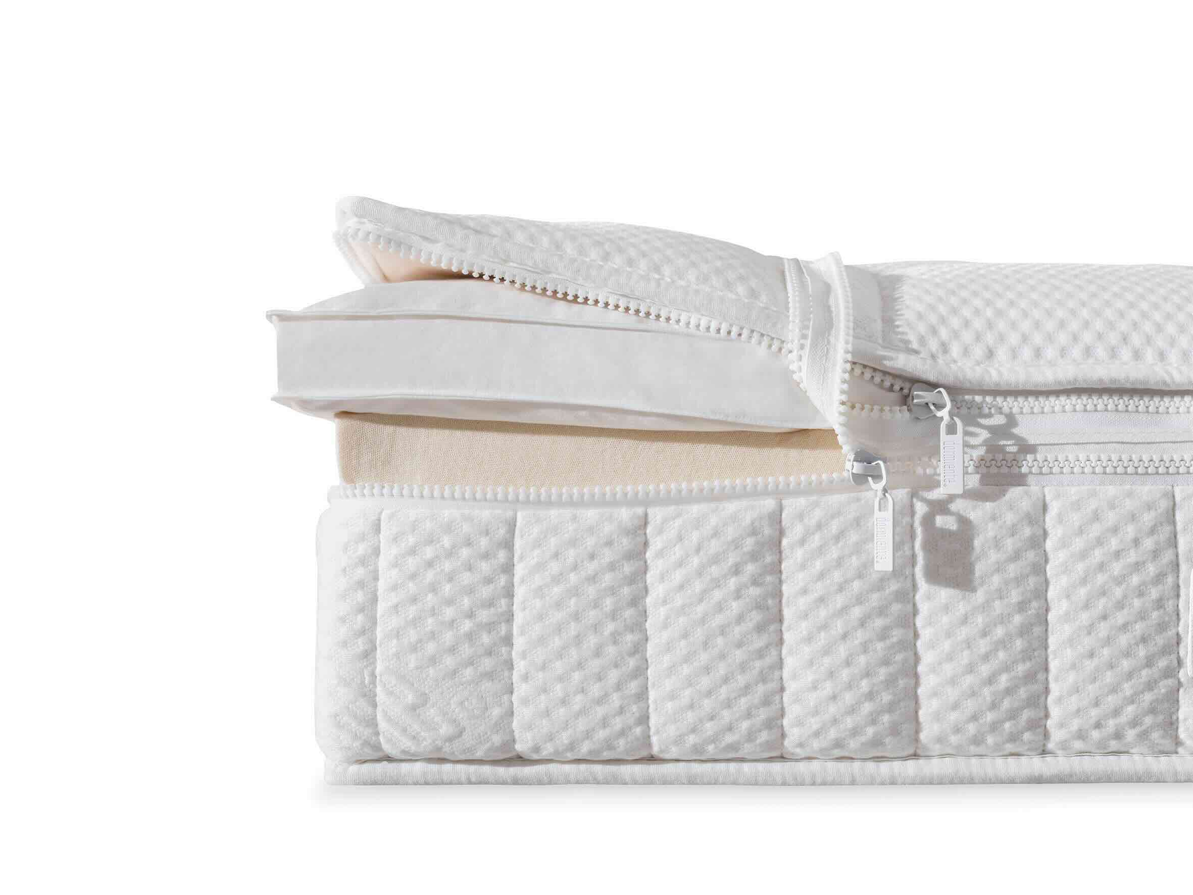 Bei dem INSIDE-Prinzip wird der Topper einfach in die Matratze integriert. Der Komfort eines Toppers wird so mit der geschlossenen Optik einer Einzelmatratze kombiniert. Kann mit allen NATURAL CLASSIC Matratzen und NATURAL DELUXE kombiniert werden und wird mit einem zusätzlichen Montagereißverschluss integriert.